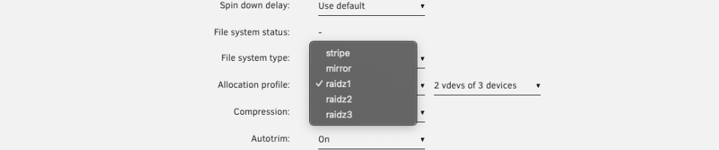 Unraid 将 ZFS 支持 vdevs 称作子池。大多数用户不需要这些,但有经验的用户可能会使用: